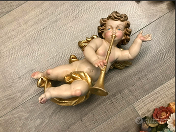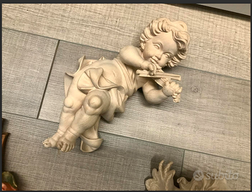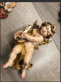 - nr 1 addobbo/statua da parete "PUTTO che suona il violino" o CHERUBINO realizzato artigianalmente, oggetto d'arte della secolare tradizione AMPEZZANA/TIROLESE. Misura 30 cm.