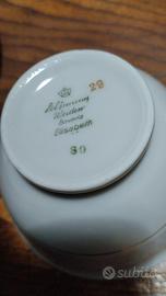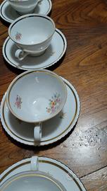 Sette tazze in fine porcellana Bavaria con motivi floreali,anni 40/50 e righino oro.Perfettamente conservate