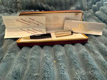 Settelaghi - Penna a sfera in argento e vernice nera con particolari dorati. Refil nero.