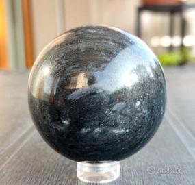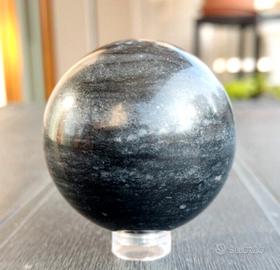 Sfera di Cristallo in Giada Nera minerale naturale.
