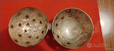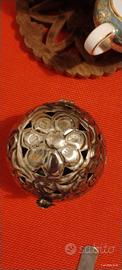 sfera metallo lavorato vintage contenitore