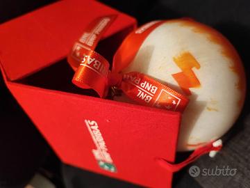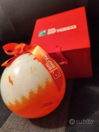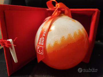 Sfera /palla natalizia in vetro opaline dipinto a mano. Collezione BNL, anno 2024. Il tema rappresentato è "Anomalo” ispirato all’opera omonima di Claudio Verna. Misura diametro 11 cm (maxi).