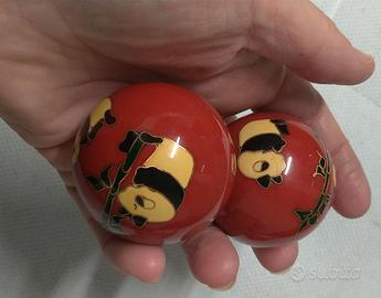 Sfere Baoding (o sfere cinesi della salute) con decorazioni a panda.