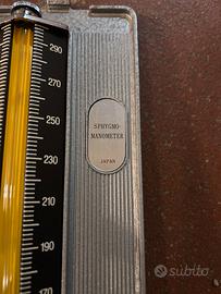 Vendo sfigmomanometro manuale a colonna con mercurio, completo di bracciale e pompetta originale.