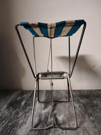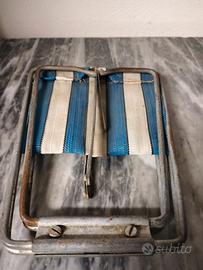 Sgabellino vintage pieghevole in acciaio e tela di plastica ideale per Pic-nic o campeggio. Misura cm 15 x 27 x 32 h. Tutto come da foto.