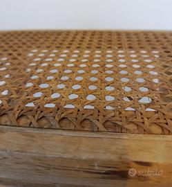 sgabello o tavolino pieghevole vintage in legno e paglia di vienna misure: seduta 24 x 34 cm altezza da aperto 36 cm ingombro da chiuso 41 x 34 x 7 cm