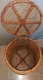 Cesta , Pouf, Tavolino, o sgabello in Bambù , anni 50 Made in Italy prodotti da Castano,fabbrica che poi ha chiuso negli anni 80, pubblicato sulla rivista Domus. Ottime condizioni ,come da foto. Misure: Diametro 40 cm Altezza 40 cm E’ compreso anche un telo di stoffa fatto su misura. Prezzo Affare 100 euro Cesto , Panaro in canna e rattan ,vimini , anni 60 Ottime condizioni come da foto Misure : Diametro 35 cm Altezza 40 cm E’ compreso anche un telo di stoffa fatto su misura. Prezzo Affare 60 euro Ritiro zona Vomero Oppure posso spedire.