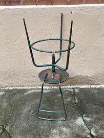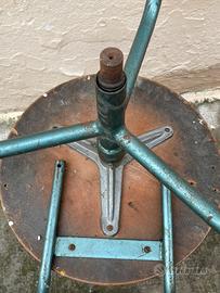 Vecchio sgabello girevole tipo industriale, utilizzato in officine o piccoli laboratori.