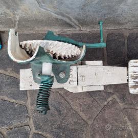 sgranatrice manuale (scaoleta) per pannocchie di mais con cavalletto in legno.