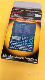 Sharp EL-6810 Electronic Organizer - memorizza Telefoni (nome, indirizzo, email, numero), scadenze, appuntamenti, calcolatrice, conversione euro e metrica, ora locale e mondiale, sveglia quotidiana, codice segreto - COMPLETO DI MANUALE in ITALIANO, inglese, tedesco, francese, spagnolo, svedese, olandese - BATTERIE NUOVE (2 * CR2032 che vengono montate al momento della vendita) - NUOVO, mai usato, acceso solo per verifica del funzionamento, PERFETTAMENTE FUNZIONANTE - vano batterie perfettamente integro - come da foto - [qw 9652] -