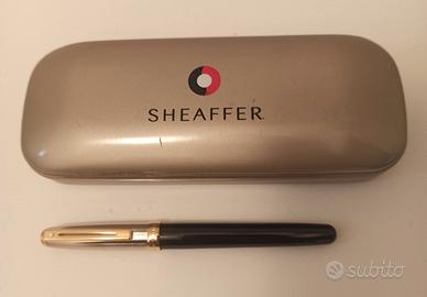 Sheaffer stilografica mai usata in perfette condizioni con corpo in lacca nera cappuccio in acciaio e rifiniture dorate.