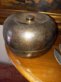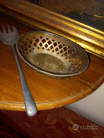 Oggettistica in silver plate marca SHERFIELD COLLECTION acquistati fine anni 60 perfettamente conservati ,ma vanno puliti con un prodotto specifico,i pezzi sono 4 di cui un cestino porta caramelle,portagioie a forma di mela e due cucchiaia da servizio.