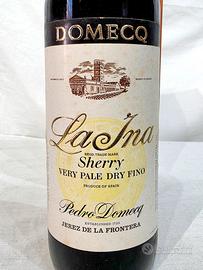 Bottiglia con scatole di Sherry "La Ina" di Pedro Domecq Perez, del 1973.