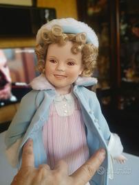 Bambola Shirley Temple disegnata da Else Hitchens, tutta in porcellana, alta circa 46/48 cm,nuova con scatola originale. Ha i vestitini indossati nei suoi films, ha con sé la sua pochette, le sue ballerine e il cappellino. Essendo la bambola nuovissima ma datata, la scatola ha i segni del tempo solo esternamente.Preferirei la vendita senza spedizione.