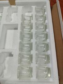 Set Nuovo mai Usato! Piano in vetro 30 x 30 cm, con alternanza scacchiera trasparente, satinato. Totale di 26 Bicchierini da 30ml, 13 in vetro trasparente e 13 in vetro satinato Scatola originale con protezioni in polistirolo.