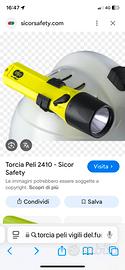 Torcia Sicor Peli 2410 con lampadina Xenon. Torcia antideflagrante Zona O Atex, corpo in abs resistente ad altissime temperature ed impermeabile fino a 1 metro. Progettata per essere fissata sui caschi antincendio tramite appositi ganci. Completa di base di ricarica per batterie agli ioni di litio con il suo trasformatore originale. Al momento dentro la torcia sono presenti batterie tradizionali. Presenta piccoli graffi dovuti al suo utilizzo.
