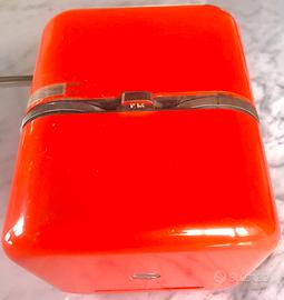 Dal disegno di Mario Bellini nasce questa radio a transistor messa in produzione da 1968 al 1974 dall’industria Siemens. Pochi esemplari prodotti hanno resa rara la sua reperibilita’ facendone salire il suo costo. Questo in vendita , funzionante correttamente , presenta solo un leggera usura al profilo basso posteriore ( dove appoggia )