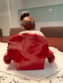 terracotta dell’artista Anna TAZZARI; rappresenta una signora con barboncino sulle ginocchia: pezzo unico numerato.
