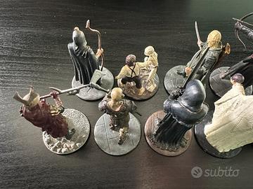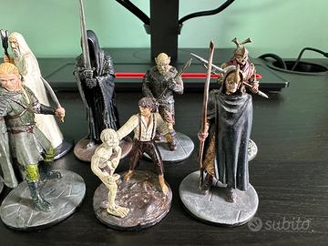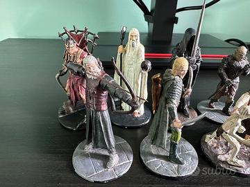 Vendo Statuine in metallo del Signore degli Anelli, nove in tutto, fatte molto bene, collezione NLP 2006. Le statuine sono in buono stato generale come da foto, ognuna ha la sua etichetta sotto, solo Aldor, l'arciere di Rohan ha l'arco incollato, ma è praticamente invisibile. Vendita solo in lotto con consegna preferibile a mano. Tra i personaggi principali ci sono Frodo, Gollum, Legolas, Saruman e uno dei Nazgul. Chiedete per altre foto.