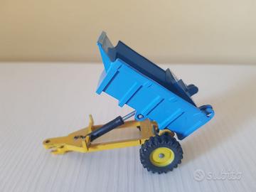 Modellino proveniente da collezione privata di Siku Tipping Trailer V254 di colore blu e giallo: rimorchio per trattore sollevabile in metallo. Scala 1:60