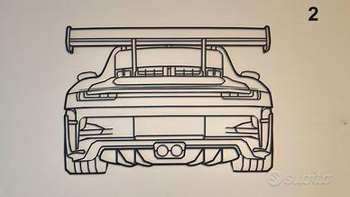 Silhouette decorazione metallo arte da parete Porsche Lamborghini PRODOTTO ARTIGIANALE INTERAMENTE PRODOTTO IN ITALIA Silhouette Porsche 992 GT3 RS - Lamborghini Aventador Svj realizzate in METALLO sp. 2.5/3 mm verniciate a polvere nera effetto bucciato/sabbiato appese al muro sono distanziate per effetto 3D FINE SERIE SCONTATE 1) Front 80 x 51 cm. 102,00Euro Front 100 x 63 cm. 137,00Euro 2) Back 80 x 57 cm. 103,00Euro Back 100 x 70 cm. 137,00Euro 4) Top orizzontale o vert. 80 x 36 cm. 102,00Euro Top orizzontale o vert. 100 x 45 cm. 137,00Euro 5) Laterale 80 x 18 90,00Euro Laterale 100 x 22 113,00Euro 6) Lambo 80 x 46 cm 102,00Euro Lambo 100 x 56 cm 137,00Euro