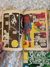 Fumetti a colori di Silver Surfer, anno 1989, dal n 1 al n 10, in ottime condizioni generali, senza pieghe, scritte o zone rovinate. Vendo solo in blocco.