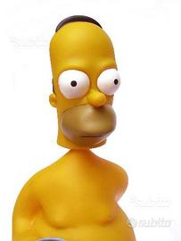 Contatti prego Tel. Voce : 333 - 4402586. Simpson di Gomma dura, alto Cm. 33, largo Cm. 12, funziona con 3 Batterie LR - 44 Volts. 4,5, inserendo una moneta da 0,50 sul retro essa casca all'interno e lui inizia a parlare frasi d'amore in Inglese, è possibile recuperare la moneta svitando il tappo sotto i suoi piedi. La testa sollecitata Oscilla tentennando a causa di una molla al suo interno, veramente buffo, proprio come nei cartoni animati. Oggetto rarissimo, direi quasi Introvabile di questa misura, da collezione, vetrine Vintage, storico per appassionati dei Simpson, marcato Simpson FOX, immagino la casa cinematografica di Hollywood Century Fox. Cedo con Formula Visto e Gradito. Prego no messaggini, soltanto telefono Voce, grazie.