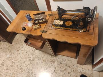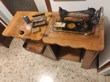 Singer 15, anno 1927. in perfette condizioni, funzionante, con mobiletto in legno e accessori originali.