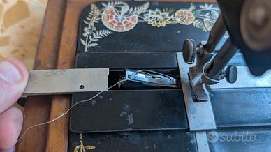 Vendo rara macchina da cucire (sewing machine) Singer 48K del 1903 (serie R1372627, Kilbowie Scozia), modello ricercato dai collezionisti. Decalcomanie buone (alcune leggermente scolorite), meccanica fluida, navetta originale presente, 2 spolette con fili colorati vintage e aghi. Chiusura coperchio perfetta.