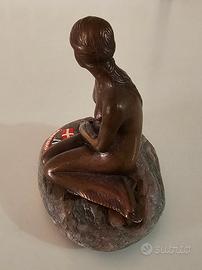Statuetta della Sirenetta, icona di Copenaghen. - Realizzata in bronzo. - Base in pietra. - Decorata con bandiere danesi e København.