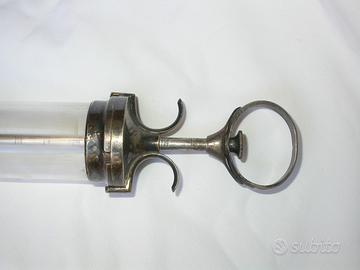 Contatti prego Tel. Voce : 333 - 4402586. Siringa del 1800 oggetto raro, testimonianza Storica della Sanità del passato. Il cursore scorre perfettamente , vetro perfetto, misure : Lunga Cm. 29, Diametro mm. 43, c'è anche il suo Ago originale che si infila perfettamente nella conicità della Cannula che è montata sopra. Oggetto raro da Museo e raccolte importanti della Storia della Sanità, Archeologia Industriale sanitaria. Valutazione Antiquaria superiore alla richiesta. Cedo con formula Visto e Piaciuto.