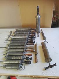 Antichi apparecchi medici in peltro utilizzati nei secoli passati per effettuare clisteri ed irrigazioni.