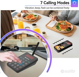 Funzione di chiamata di gruppo; cercapersone per ristorante; chiamata di gruppo senza riabbinamento; basta premere F3; tutti i cercapersone suoneranno contemporaneamente; risparmia molto tempo