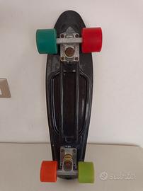 L'immagine mostra un Skateboard Marca "SUN & SPORT" un tipo di mini cruiser in plastica noto per il suo design compatto e colorato.