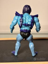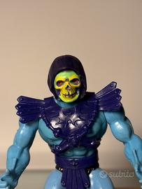 In vendita splendido Skeletor Vintage (1982), variante 8-Back / 3rd Release, un pezzo immancabile per ogni vera collezione Masters of the Universe. La figure si presenta in buone condizioni generali, considerando i suoi 40+ anni di vita. La plastica ha mantenuto un'ottima colorazione e il volto presenta ancora quel contrasto verde/giallo acceso tipico delle prime edizioni. Dettagli della variante: Half-Boots: I rari stivali verniciati a metà. Black Trunks: Mutande nere (caratteristica distintiva della 3rd release). Stato: La figure è solida e presenta i naturali segni del tempo. Le foto allegate sono parte integrante dell'annuncio e mostrano fedelmente lo stato dell'oggetto. Accessori e Meccanismo: Armatura: Originale e ben conservata. Spada: Inclusa (segnalo elsa rotta, come da foto). Power Punch: Il meccanismo a molla della vita è scattante e perfettamente funzionante. Blister in omaggio. Pezzo autentico Mattel, ideale per chi cerca una variazione rara e iconica con il fascino originale degli anni d'oro dei MOTU. Prima di comprare chiedere , in vendita anche in altri canali. Possibilita ritiro a mal zona novara , saronno,monza
