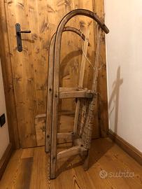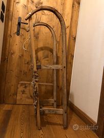Vendo ad appassionati e collezionisti questo bellissimo slittino Vintage. Costruito in legno, tela e ferro trasmette con fascino rustico i divertimenti di un'altra epoca, quelli fatti con il cuore per divertirsi in naturale semplicità! Ricorda grandi emozioni sulla neve. Usato e con segni del tempo ma veramente bello anche perché vissuto. Nel giusto contesto sarebbe proprio una bella decorazione!