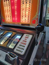Slot machine BALLY Chicago Illinois U.S.A. anno 1965 completa di base (solo per uso domestico non consentito ad uso pubblico) Misure altezza 160 larghezza 58 profonditá 50 cm circa, completamente restaurata. NON SPEDISCO Ritiro a mano a Brescia