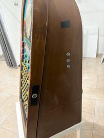 Vendo rara slot machine Golden Roulette 12 originale, modello Admiral Rainbow, in stile vintage anni ‘80-‘90. Funzionamento elettrico “ da riparare solo il cassetto”, con spina posteriore, ideale per appassionati, collezionisti o come pezzo d’arredo scenografico per locali, sale giochi, taverne o ambienti in stile retrò. Presente il rullo numerato con luci e pannello di gioco completo. Condizioni buone, segni del tempo coerenti con l’età.