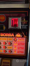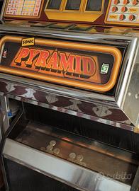 Slot machine anni '90 modello Pyramid della SONIC SEGA.S.A. Perfettamente funzionante in tutte le luci e suoni. Completa di molti gettoni. Piccolo danno estetico come da ultima foto.