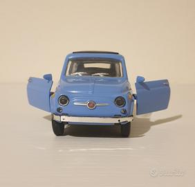 Vendo modellino Fiat 500 F della Smart Toys (1999) con ottimi dettagli e ben conservato nonostate il tempo. Il tettuccio può essere rimosso per diventare una decappottabile.