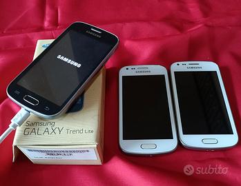 Lotto #7 3 cellulari smartphone Samsung - 1 Samsung Galaxy Trend lite nero funzionante resettato ( no batteria ) - 2 Samsung Galaxy Trend plus bianchi no batteria ( 1 si accende, l altro non testato) PER COLLEZIONISTI O PER RECUPERO PEZZI NO CARICA BATTERIE VENDITA TRA SOGGETTI PRIVATI FORMULA VISTO E PIACIUTO