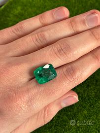 Smeraldo verde 9.50 ct taglio Emerald certificato. Dimensioni 14x11x8 mm. La pietra è in perfette condizioni. Eccellente taglio e trasparenza. Spedito con certificato