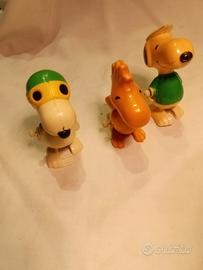 Tre figure rappresentanti Snnopy e Woodstock degli anni 70 a carica non funzionanti ma perfettamente integre