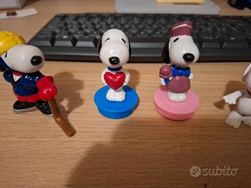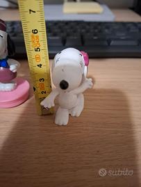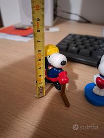 Personaggio Snoopy con cappello giallo e bastone da hockey.