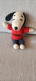 Snoopy di pezza con jeans e maglietta rossa, altezza 26 cm