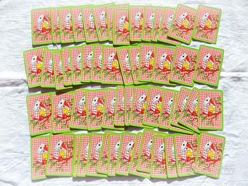 SNOOPY 2 MAZZI DI CARTE Vintage 80. *RISPONDO SOLO ad ALTRI UTENTI ISCRITTI A SUBITO, con PIU' ANNUNCI ATTIVI.* NO SERIALE PRODUZIONE CONTEMPORANEA! NO VINTAGE USATO! QUESTI oggetti non hanno NULLA a che vedere con merchandising attuale di SNOOPY (giochi e carte comprese!) che si può trovare copiosamente nei negozi o sul web, tutto Made in China - PRC. disponibile in MIGLIAIA E MIGLIAIA DI PEZZI TUTTI UGUALI e di NESSUN VALORE collezionistico, Vintage e QUALITATIVO! Qui si parla di oggetti NUOVI ma AUTENTICO VINTAGE ANNI '80. Inconfondibili per la loro fattura e per i marchi UFS e HALLMARK e disponibili in UNA SOLA COPIA! DUE RARISSIMI e NUOVISSIMI MAZZI DI CARTE, entrambi NUOVI, uno ancora SIGILLATO, di SNOOPY, autentico e originale Vintage anni Ottanta by HALLMARK. NO PRODOTTI SERIALI di BASSA QUALITÀ. PEZZI UNICI, CHE AVRETE SOLO VOI. CARTE in CARTA PLASTIFICATA, BELLISSIMI COLORI e SPLENDIDE STAMPE. INTROVABILI... NON SI TROVANO SU INTERNET (se non usati... e... cosa c'è di più sporco di un mazzo di carte usate???), NON SI TROVANO SU AMAZON... NON SI TROVANO IN NESSUN NEGOZIO, nè reale, nè virtuale. Per COLLEZIONISTI ESIGENTI o per chi vuole fare un REGALO davvero PREZIOSO e UNICO. DIMENSIONI CONFEZIONE: 9 x 6 x 1,5 cm. CIRCA. SINGOLA CARTA: 9 x 5,7 cm. PESO 2 MAZZI: 180 gr. CONTENUTO 1 MAZZO: 52 CARTE + 3 JOLLY. - CONDIZIONI ARTICOLI NUOVI DA NEGOZIO, nella LORO CONFEZIONE ORIGINALE, COMPLETI e PERFETTAMENTE PULITI. * NON TRATTO E NON HO MAI TRATTATO USATO.* IL MAZZO 'BLU' è ancora ERMETICAMENTE SIGILLATO. IL MAZZO 'VERDE' è solo stato aperto, ma, ritrovato insieme nello stesso negozio, sempre più che nuovo ed ancora con il suo cellophane, sebbene rotto e mancante in alcuni punti. In un lato, c'è una PICCOLA ABRASIONE. PEANUTS CHARACTERS © 1958, 1965 UNITED FEATURE SYNDICATE INC - HALLMARK - MADE IN BELGIUM. Per il MAZZO BLU, valgono le REGOLE in merito al VINTAGE SIGILLATO (e al BUON SENSO!) - Spedisco solo con POSTE DELIVERY STANDARD.