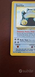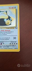 Vendo rara carta di Snorlax Olografica originale del 1999, appartenente allo storico set Jungle (11/64). Un pezzo immancabile per completare la propria collezione vintage della prima generazione. Edizione: Set Jungle (Wizards of the Coast) Rarità: Holo Rare (Stellina) Lingua: Inglese Condizioni: La carta è in condizioni Excellent (EX) / Lightly Played (LP). Presenta il classico "silvering" (leggera usura argentata) sui bordi del fronte e alcuni segni di sbiancamento (whitening) sul retro, come visibile in foto. La superficie olografica è ben conservata e mantiene un ottimo impatto visivo. Selling an original Holographic Snorlax from the iconic 1999 Jungle Set (11/64). A must-have classic for any first-generation vintage collection. Set: Jungle (Wizards of the Coast) Rarity: Holo Rare (Star) Language: English Condition: The card is in Excellent (EX) / Lightly Played (LP) condition. It shows some "silvering" (light silver wear) on the front edges and some whitening on the back, as seen in the photos. The holographic surface is well-preserved and has great eye appeal.