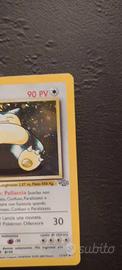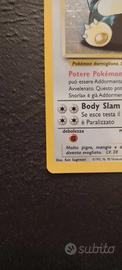 Vendo Snorlax olografico set Jungle 11/64, lingua inglese, originale Wizards (vintage), unlimited. ✅ Holo brillante ✅ Condizioni generali NM- ✅ Conservata in sleeve + top loader ⚠️ Piccolissimi segni/imperfezioni sui bordi (visibili in foto), nessuna piega evidente Spedizione super protetta (top loader + cartoncino rigido + busta imbottita). Posso inviare foto/video in controluce per mostrare bene holo e retro.
