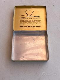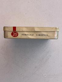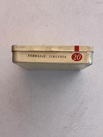 Elegante porta sigarette Sobranie. - Modello Straight Cut Virginia. - Design vintage con immagine. - Materiale metallico. Misure 8x7x2