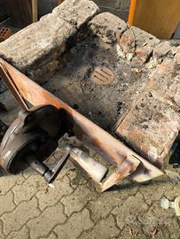 Soffiatore forgia a manovella vintage Optima - Soffietto da fabbro da collezione. Rarità.. FUNZIONANTE e ottime condizioni. In ghisa. Risalente anni 50-70. Corredato da basamento e fucina realizzata in modo artigianale. Per amatori e collezionisti.